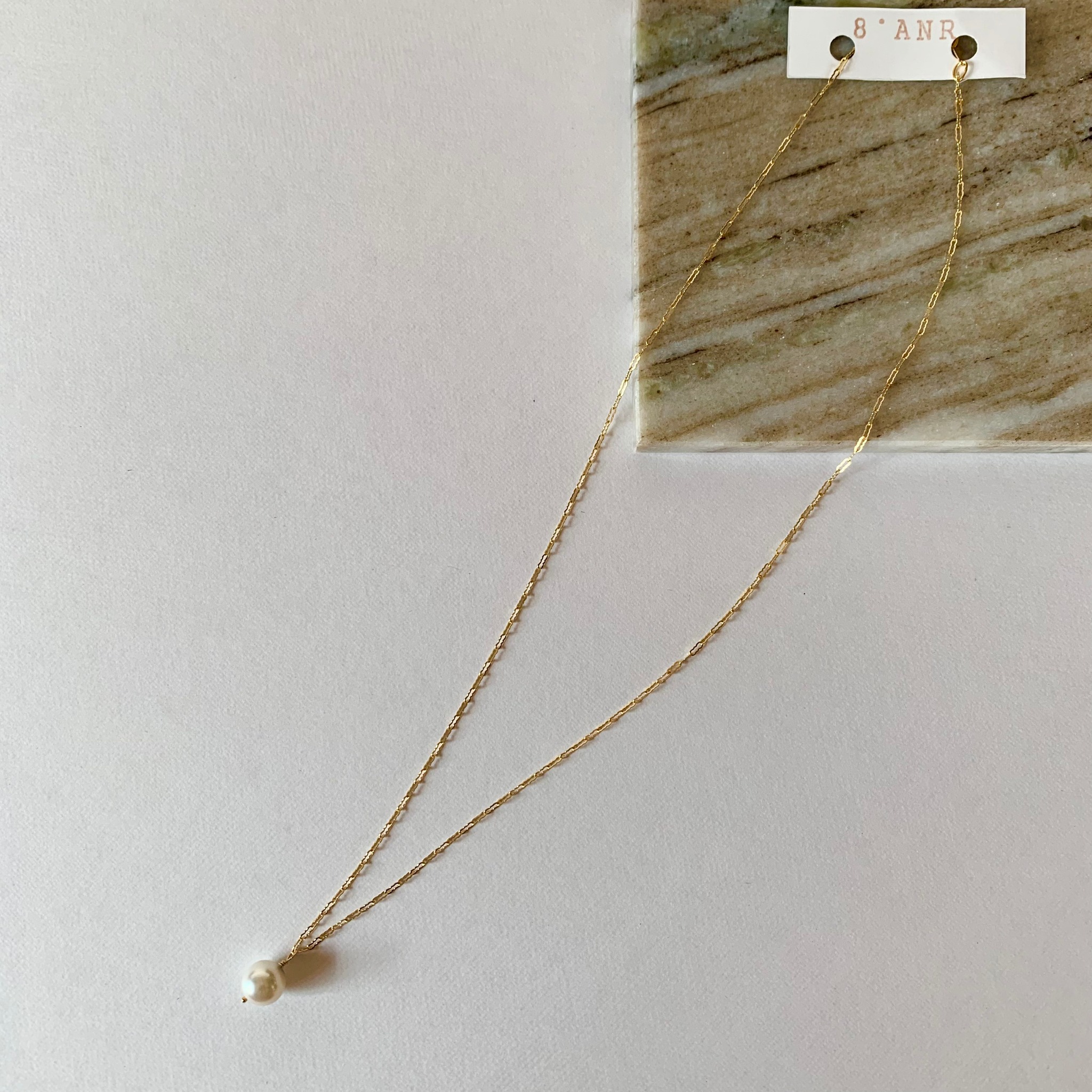 そのアコヤ真珠を一粒、14gfdネックレスに通したシンプルネックレスです。