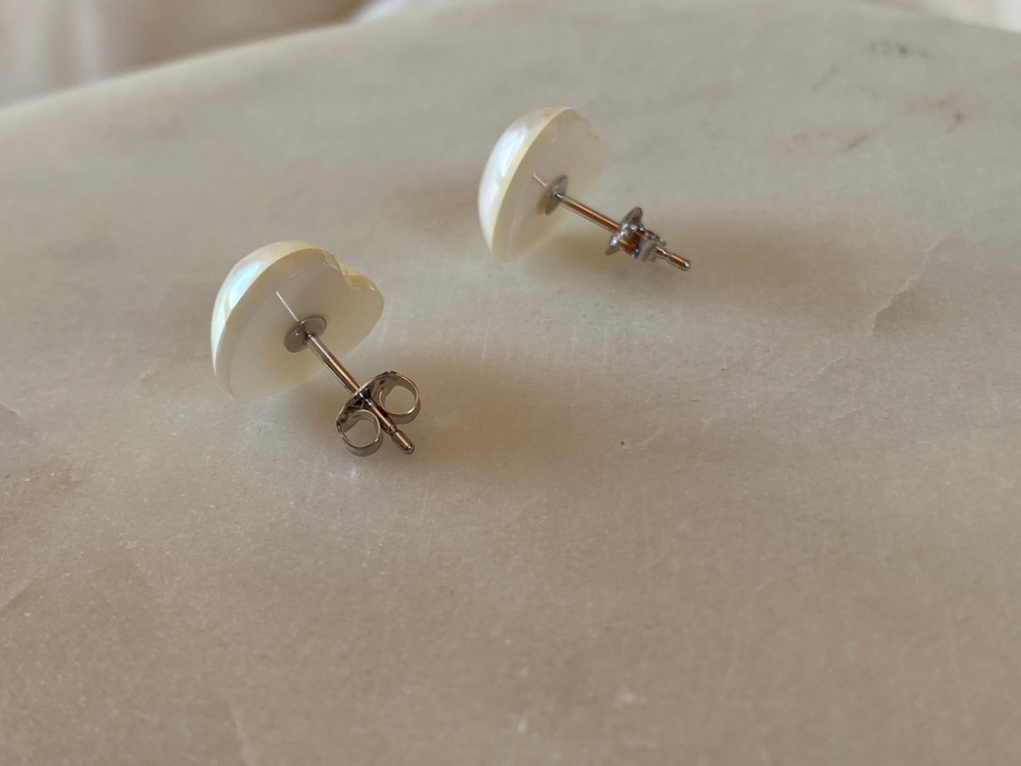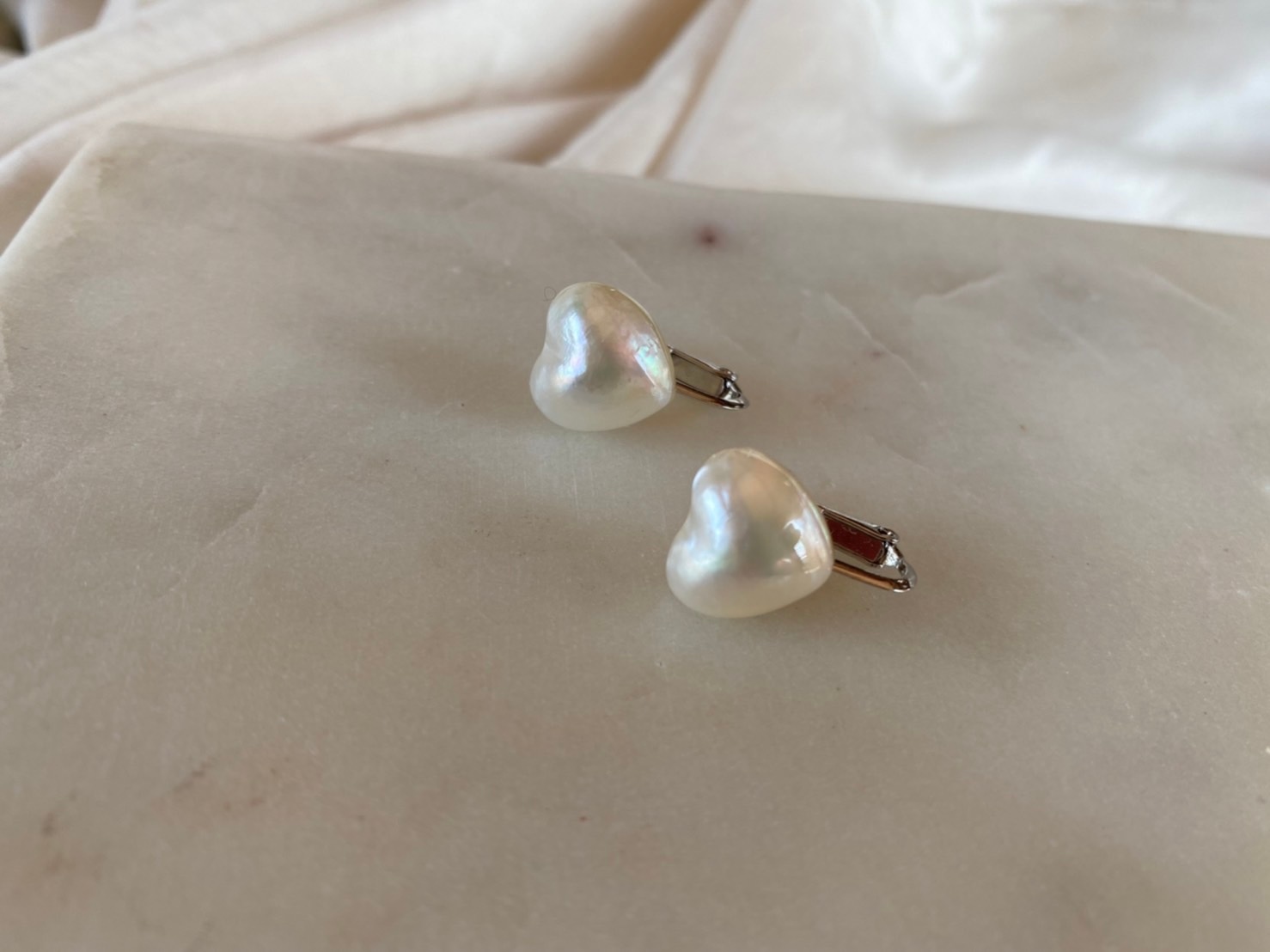 ハート型のパールは白蝶貝を母貝としたマベパールのピアスです。