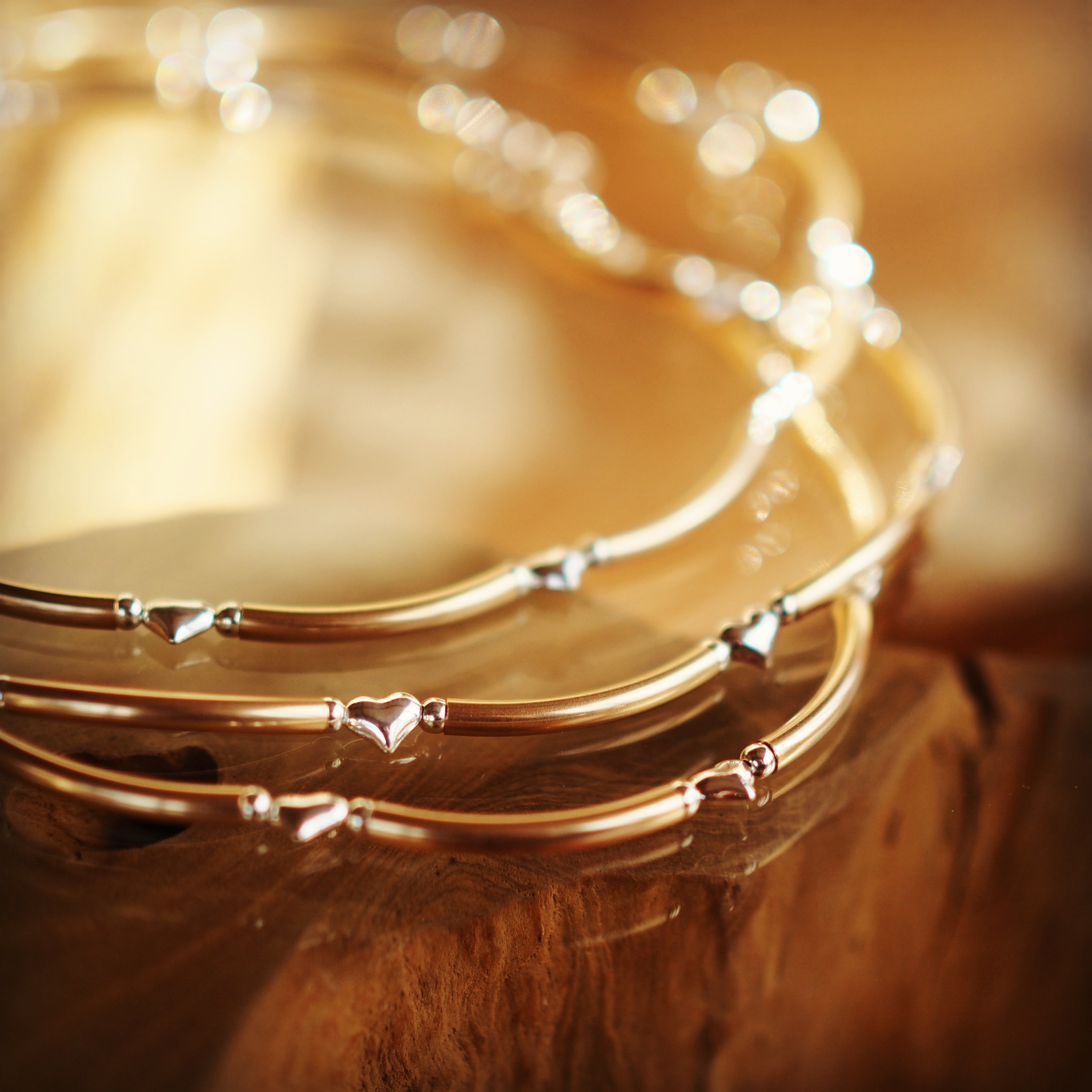 ハートチューブGOネックレスは、シルバーのちいさなハートがピリリと効いたデザインです。