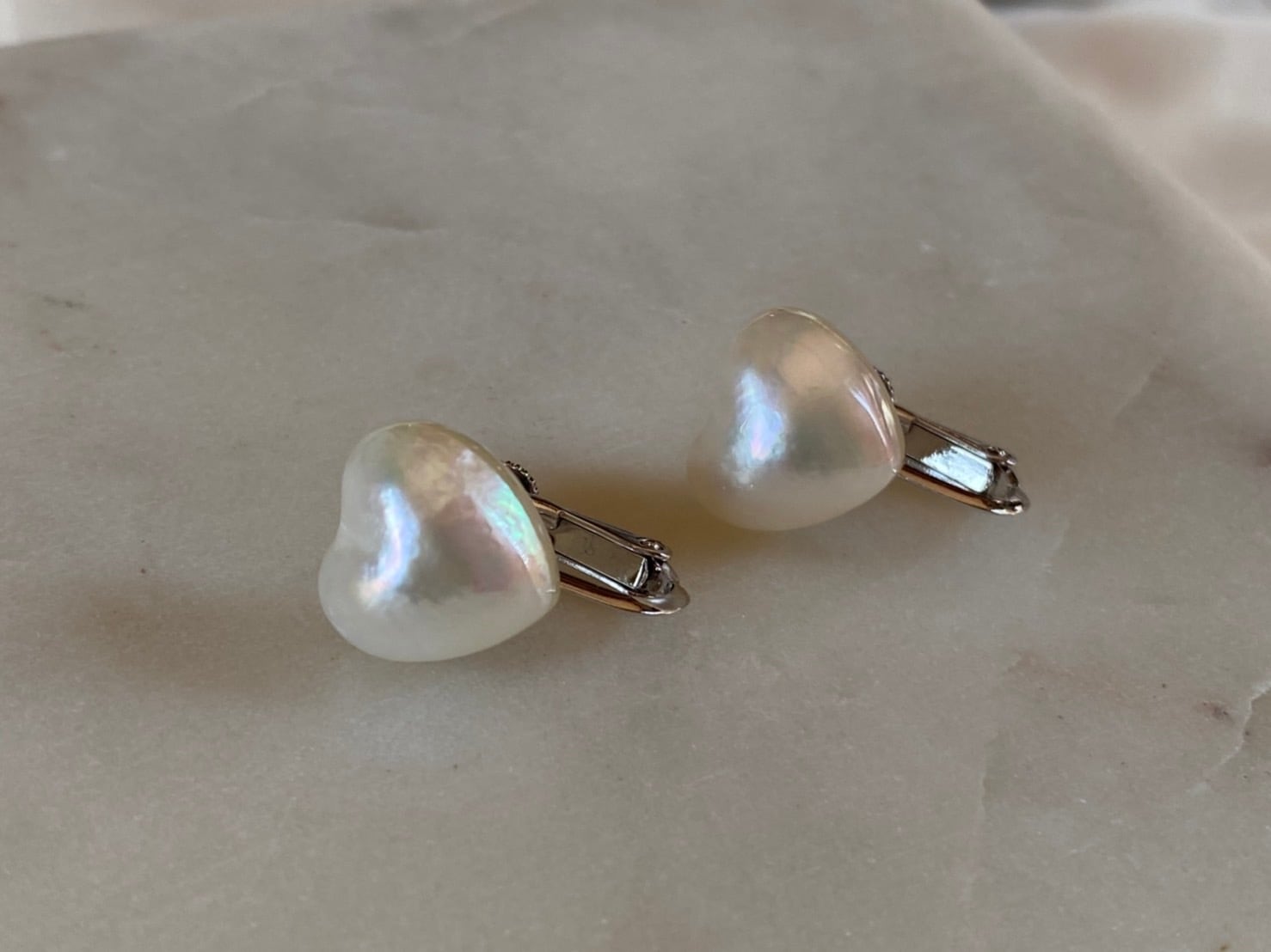 ハートの形をしたマベパールのイヤリングです。