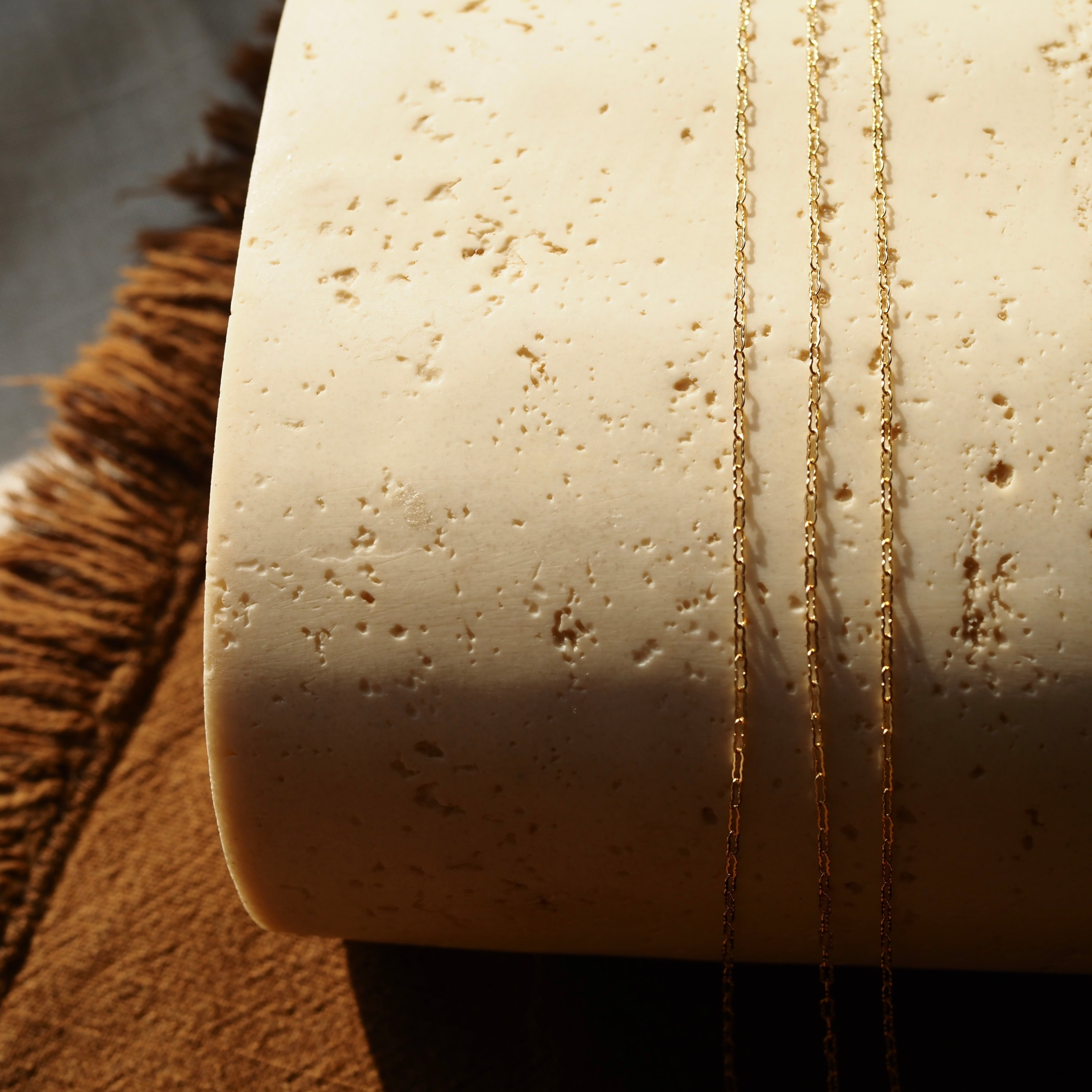 きらきらと微細な瞬きをみせるシンプルなチェーンネックレスは、基本の一本として持っておくとスタイリングの幅が広がっていきます。